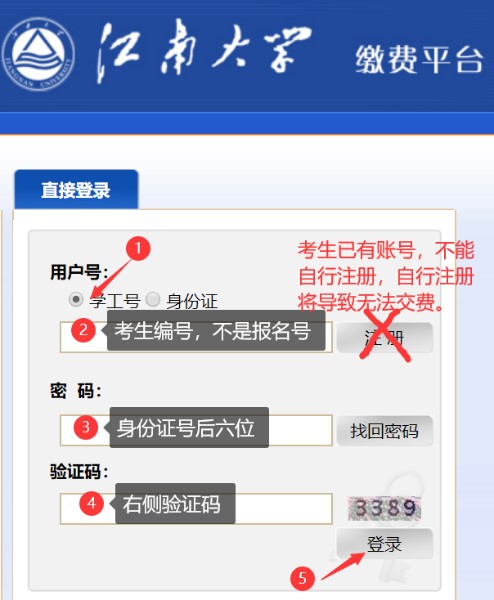 缴费说明:进入复试考生在学院规定的时间内登录“伟德victor1946缴费平台”交纳复试费用,复试收费标准:80元/生。缴费网址:http://pay.jiangnan.edu.cn/payment/。登录账号为准考证上的考生编号,登录密码为身份证后六位(友情提醒:考生账号已开通,切勿自行注册)。按照提示交费(使用网银),并打印或截图保存付费凭证。