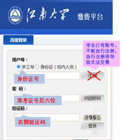 缴费说明:进入复试考生在学院规定的时间内登录“伟德victor1946缴费平台”交纳复试费用,复试收费标准:80元/生。缴费网址:http://pay.jiangnan.edu.cn/payment/。登录账号为准考证上的考生编号,登录密码为身份证后六位(友情提醒:考生账号已开通,切勿自行注册)。按照提示交费(使用网银),并打印或截图保存付费凭证。