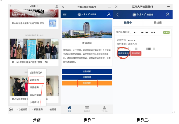 考生采用“访客预约”入校,考生请按照以下步骤进行操作: