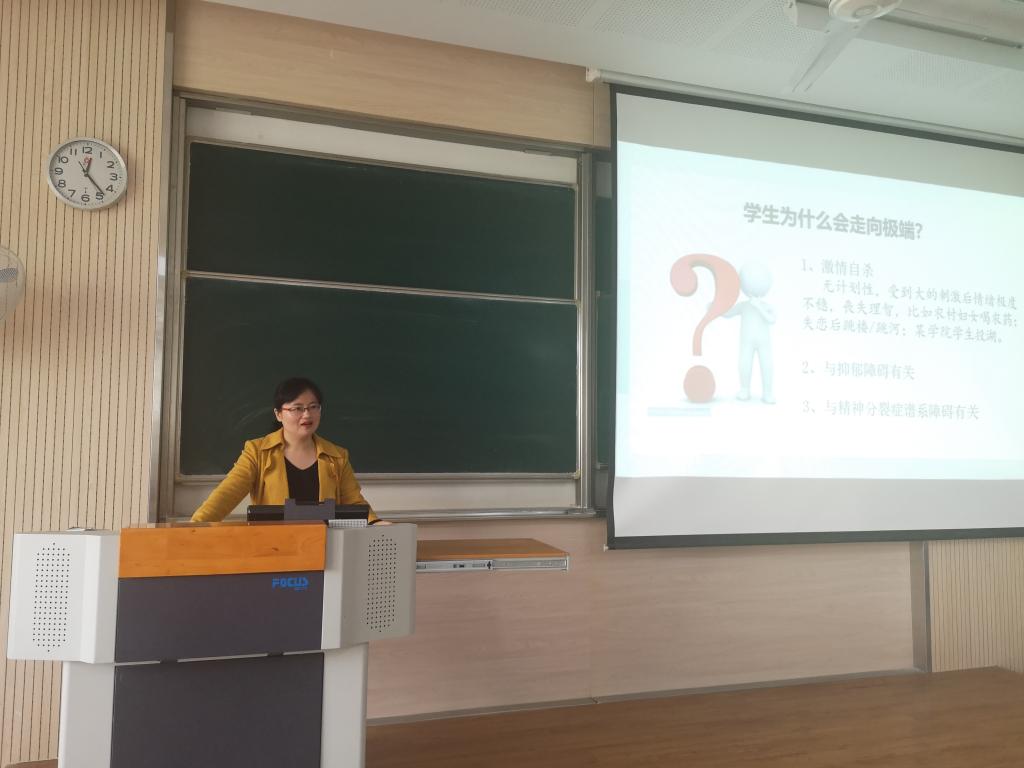 培训中,董霞老师由最近几起自杀事件切入话题,围绕着谨防维特效应的发生、媒体对自杀行为进行美化以及要理性开诚布公的讨论三个关键点展开讲解,对“大连理工研究生自缢身亡”事件重点分析,说明身体的不适、无亲密朋友的陪伴等等情况都会引起心理的波动,从而最终导致悲剧的发生。在随后的讨论中董老师通过真实的案例向各宿舍长阐明了他们在心理疏导中的作用,强调如何及时发现并解决。同学们认真听讲,反响热烈。