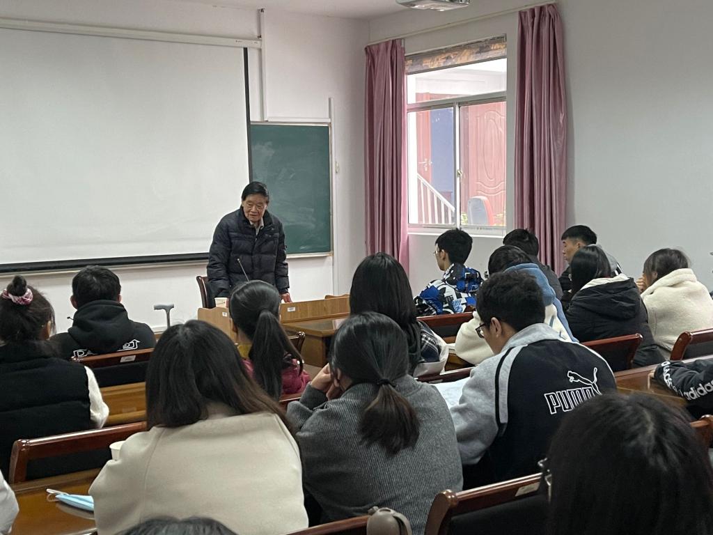 2.燕庆明教授正在讲授《高举党的旗帜前进》