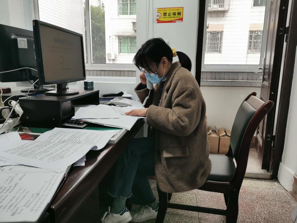谢雨思在四川眉山仁寿县慈航镇的扶贫办公室,登记人口普查信息,录入疫情防控信息,收集贫困信息资料等;协助乡镇干部做好对前来办事人员的体温监测以及对超市、茶馆等地的疫情防控检查。