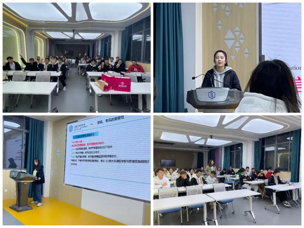 在本次会议中,纪倩老师向大家强调了学风、考风的重要性,鼓励大家诚信考试,严谨治学。学风,顾名思义,即治学之风,更是一种做人之风。加强学风建设,既能为大学生的成长、成才营造良好的环境,也能增强同学们学习的积极性,促进大学生的健康成长和综合素质的全面提高。