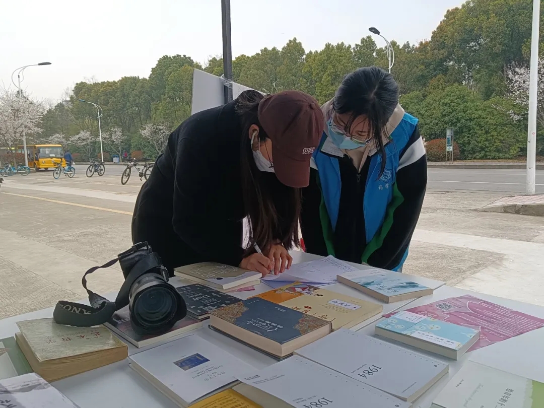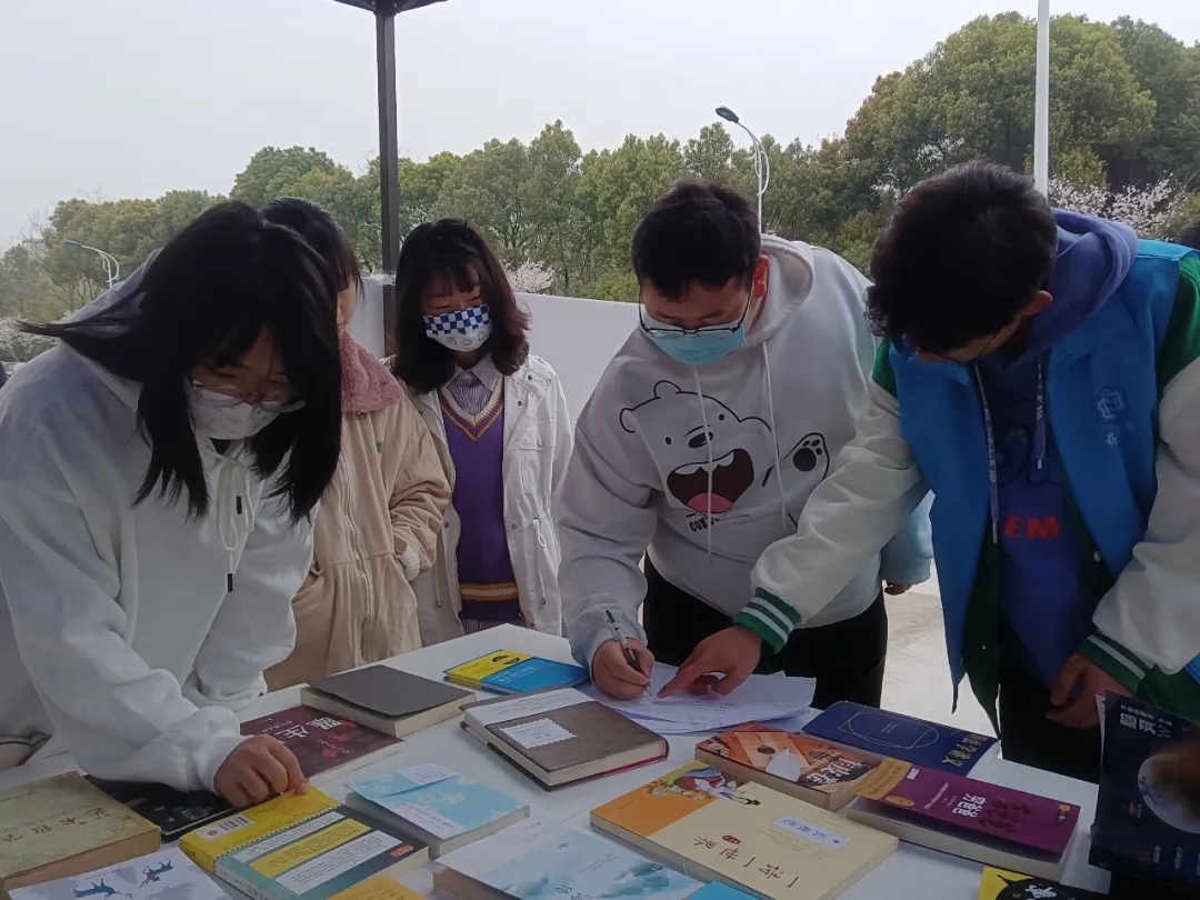 随着时间的推移,风渐渐变大,可大家的热情依旧不退,活动仍然如火如荼地进行:有些同学穿梭在多个地点,只为找到那自己中意的有趣灵魂;有些同学在了解到活动后,连忙跑回宿舍寻书;有些同学迫切地询问活动的结束时间,唯恐错过属于自己的soulmate……这些书里或夹着一张明信片,亦或者贴着一张便签,这不但是原主人对新主人的寄语,更是书友情感共鸣的体现。伴随着最后一位同学的离开,太阳已然傍山,本次活动落下了帷幕。