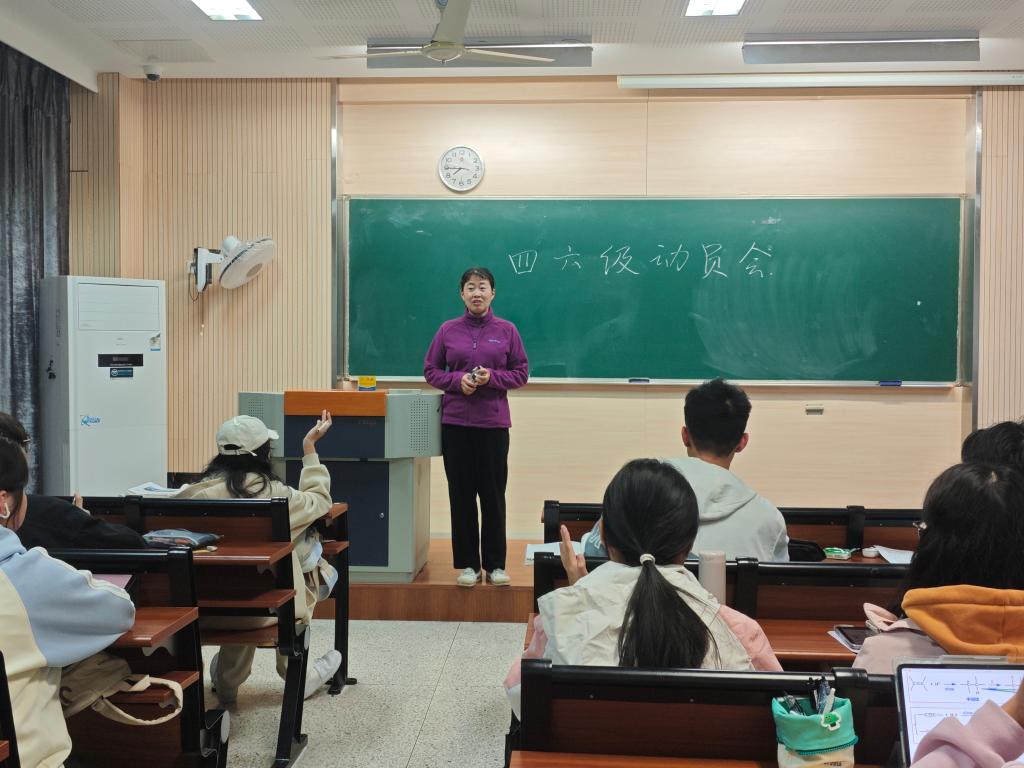 制药2401班主任宋伟介绍了制药专业的职业发展路径和英语课程体系,提醒同学们注重大学英语与专业英语的日常积累学习,强调了英语等级考试对同学们未来学业深造与职业发展的深远意义,要求大家务必认真对待备考,将课余的碎片化时间高效利用起来用于复习。此外,宋老师为全班同学集体立下 “全员过级” 的目标,强调这不仅是对个人英语能力的挑战,更是班级凝聚力和集体荣誉感的体现。同学们表示将全身心投入到接下来的六级备考中,大家坚信,单词本上的每一次记录、耳机里的每一段精听、深夜灯光下完成的每一篇作文,都将成为考场上的有力武器。