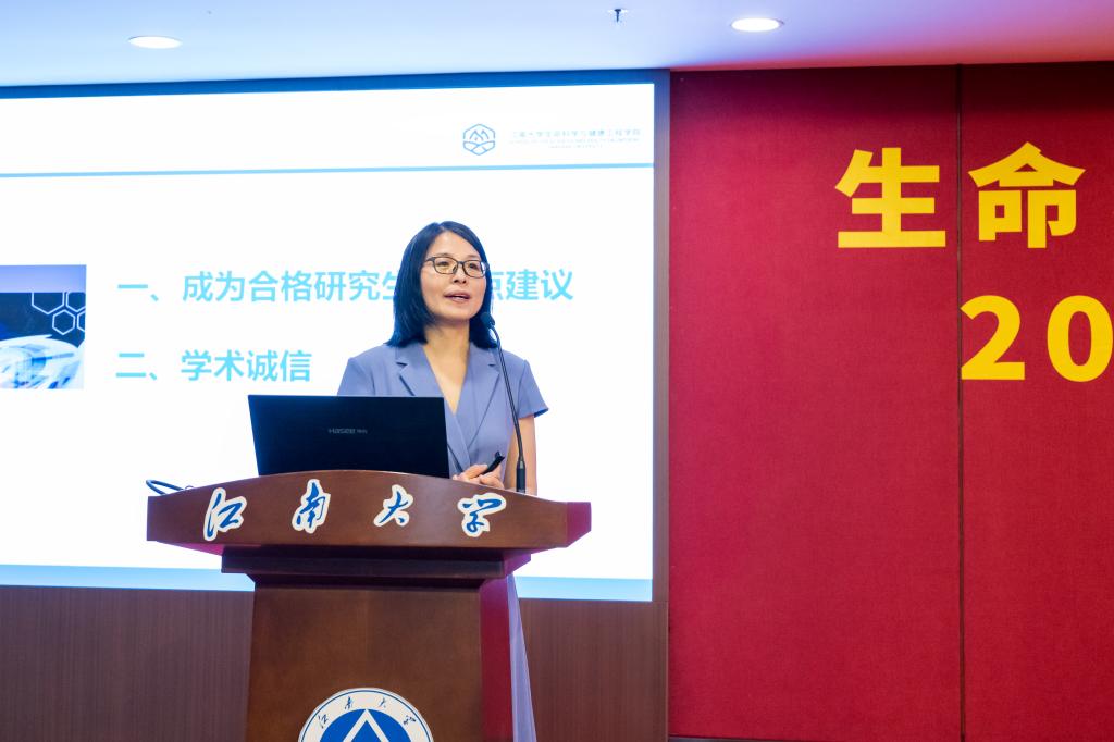 吴静为研究生新生开展入学教育,进行科学道德与学风建设宣讲。她从培养教育、日常管理、学术规范等多维度全面解读学院制度,引导新生树立正确的科研价值观,秉持严谨学术态度,坚守仁心仁术。她希望同学们热爱科研、锤炼本领、勇于探索,以坚定信念和扎实努力攀登学术高峰。