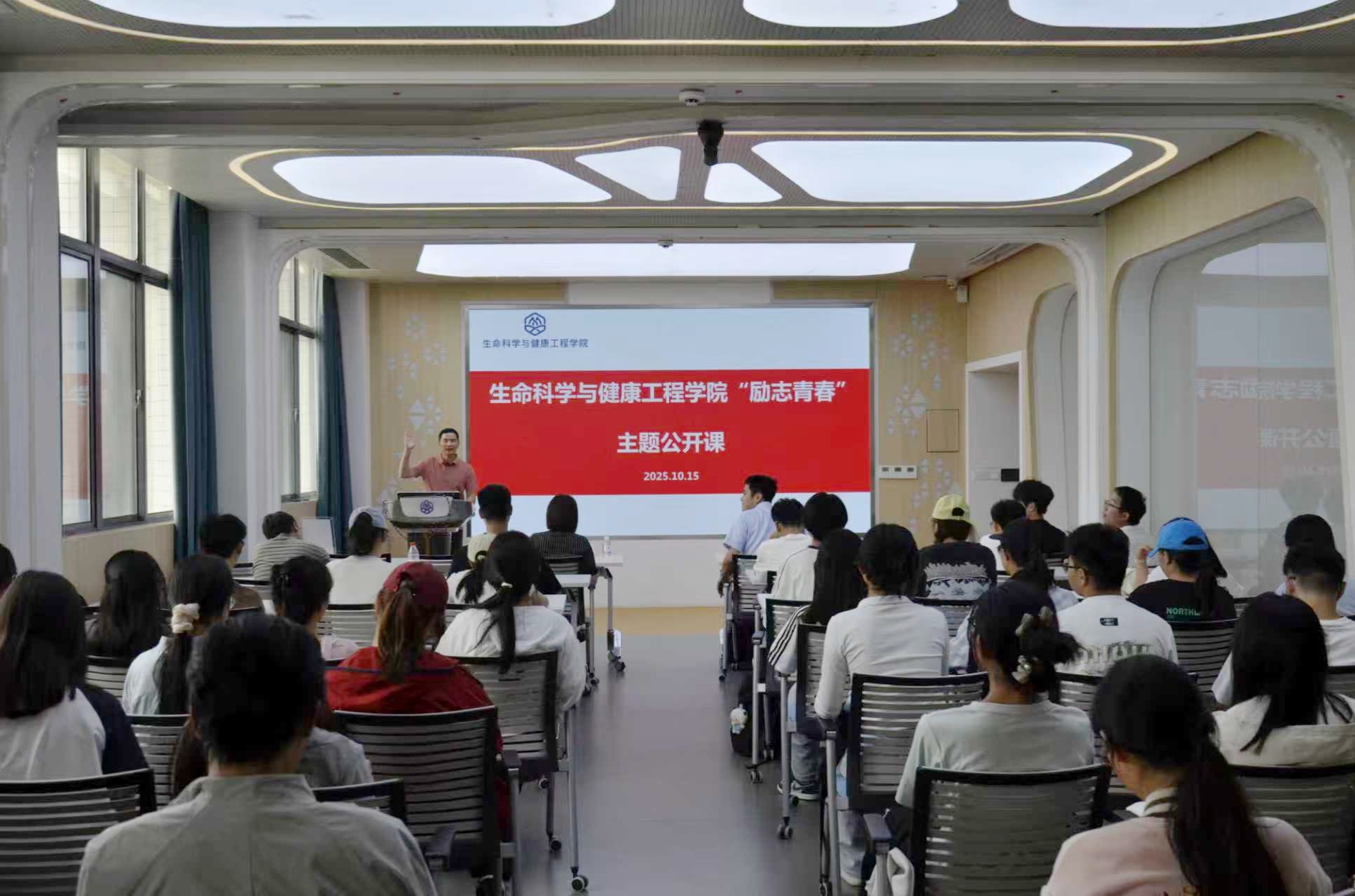 为充分发挥朋辈榜样引领作用,促进大学生综合能力发展,提高创新创业能力。10月15日下午,伟德betvlctor1946源于英国在学院306会议室组织开展了“励志青春”主题公开课,活动邀请无锡清耳话声科技有限公司副总经理朱仁骏进行分享。学院党委副书记兼副院长孙颖、辅导员苗文建及80余名学生参与了此次活动。活动由苗文建主持。