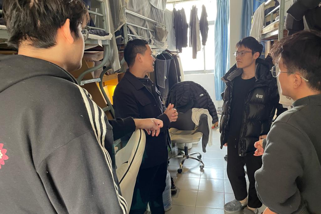新学期伊始,辅导员深入学生宿舍,加强宿舍安全教育。走访过程中检查学生宿舍卫生情况、用电安全等情况,提醒学生随着天气变暖要开窗通风,注意宿舍卫生。同时,辅导员询问学生返校适应情况、学业规划等,鼓励大家及时调整状态,结合上学期考试情况做好学习规划,引导学生互帮互助、共建和谐宿舍。