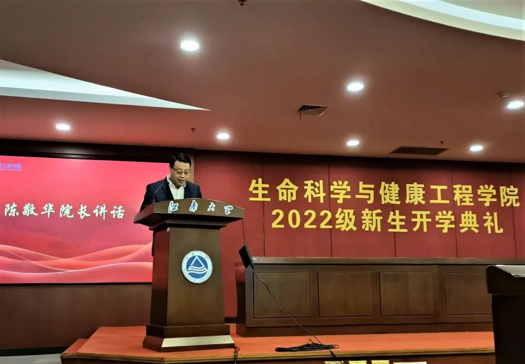 在庄严的国歌声中,开学典礼正式拉开序幕。陈敬华院长对新生表示热烈欢迎和衷心祝贺。为帮助新生们扣好大学的“第一粒扣子”,他向同学们提出了三点希望,一要学有所长、练就本领,树立梦想从学习开始、事业靠本领成就的理念,掌握真才实学,锻造栋梁之才;二要敢于尝试、善于学习,培养独立思考和终身学习的能力,以应对未来社会的变化;三要加强交流、融入集体,在集体中快乐地学习生活、快速地成长进步、收获人生中最美好的记忆。最后,陈院长祝愿同学们能够潜心问学,笃行不倦,在江南的热土历练成长,接续奋斗,逐梦前行。