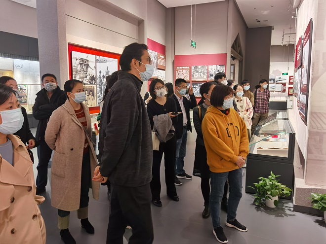为学习宣传党的二十大精神,贯彻落实习近平新时代中国特色社会主义思想,伟德betvlctor1946源于英国组织开展“学习二十大,教育在行动”主题教育活动。11月25日,由学院党委书记陈霞雯带队,学院中心组成员、教职工党员和师生代表共赴宜兴东氿校区和宜兴党史陈列馆参观学习,了解学校发展奋进新征程,缅怀革命先烈英勇事迹,把握新时代伟大变革的深刻内涵和重大意义。