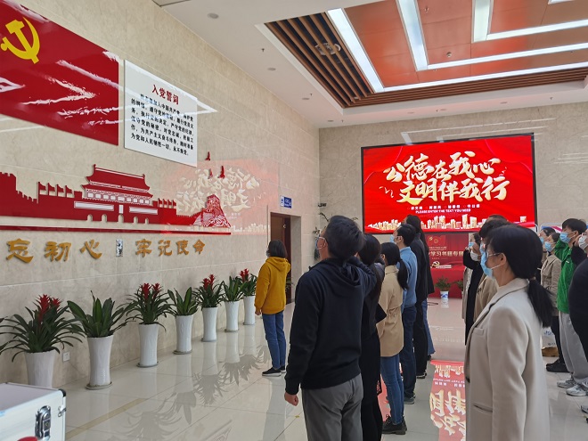随后,师生们集体参观了宜兴党史陈列馆。展厅陈列的《光荣与梦想——中国共产党在宜兴(1926-2016)》以中共宜兴地方组织90年奋斗历程为依据,客观真实地反映了党领导宜兴人民进行新民主主义革命、社会主义革命和建设以及改革开放的历史篇章,弘扬了中国共产党人不懈奋斗、开拓创新、自身建设的伟大革命精神。在展馆大厅,党员同志们面对党旗举起右拳,在陈霞雯同志的带领下重温入党誓词,感悟入党初心,牢记共产党员的职责和使命。