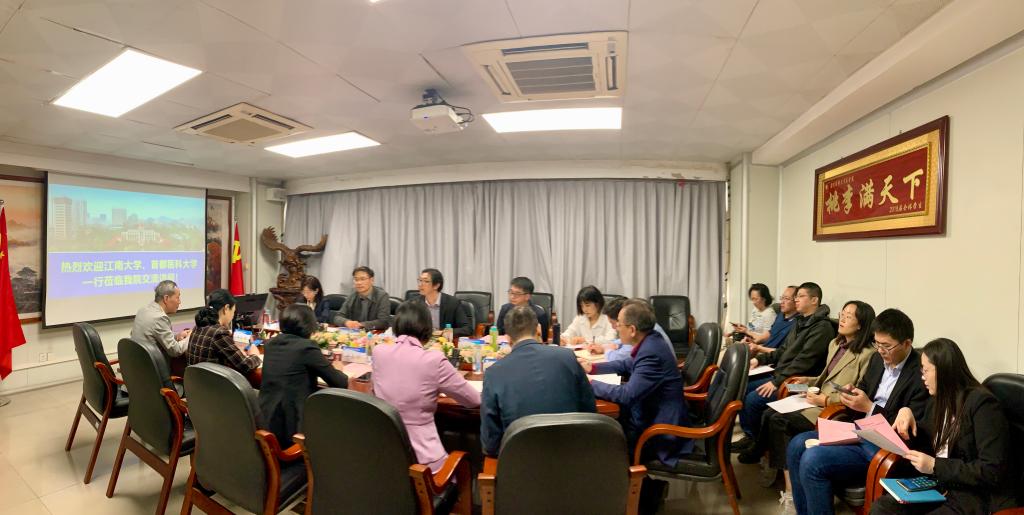 暨南大学药学院药学学科是国家教育部“双一流”建设学科。在与暨南大学药学院的交流中,张冬梅、张继涛、尹健、史志洪分别围绕组织架构、管理与服务、学科建设和科学研究等方面进行了介绍,随后双方就党建创新、学科建设、横纵向项目开展、行政管理等议题进行了深入交流,并参观药学院公共科研平台和中药标本馆,学习了暨南大学药学“双一流”学科建设成果和中医药文化。