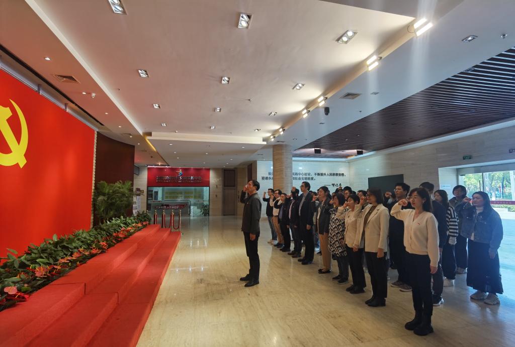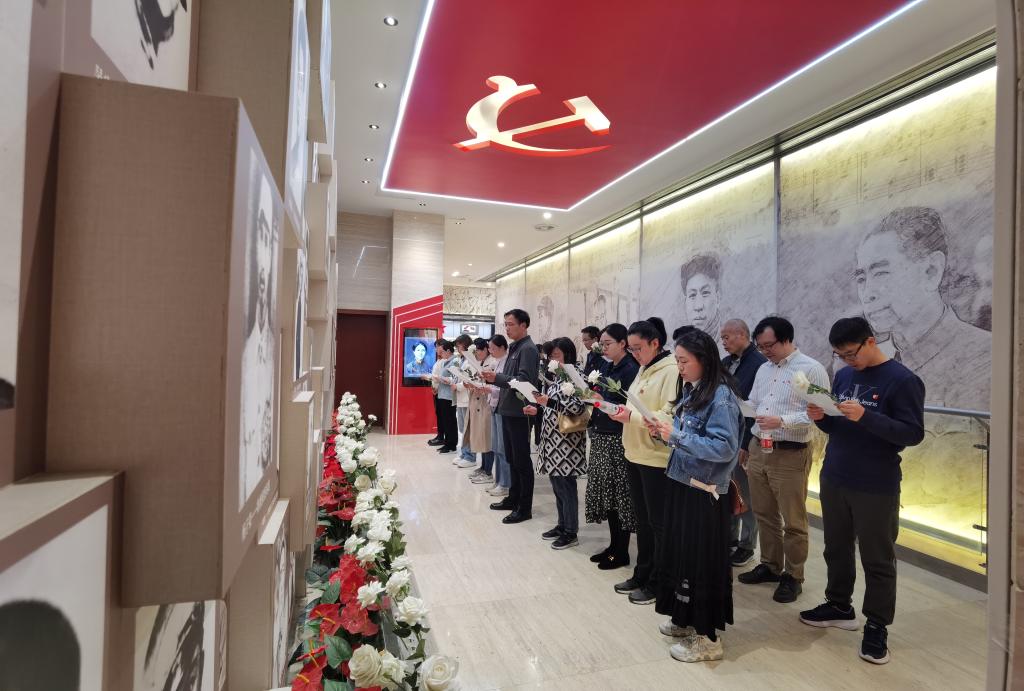 在党建馆,以“学习两会精神、牢记育人使命”为主题开展党日活动。首先,全体党员在史志洪带领下重温入党誓词,面对鲜红党旗,庄严宣誓,表达了为党的事业奋斗终身的坚定决心。随后,大家在讲解员引导下参观中国共产党红色精神谱专题展示,汲取中国共产党在革命、建设和改革时期焕发出的伟大力量。展示区共有518幅珍贵图片资料,全面直观地展示了中国共产党在各个时期产生的红色精神,展现了革命烈士为践行初心使命而浴血奋战的英雄事迹。全体党员来到革命先烈群像前,齐声诵读缅怀诗文,向革命先烈敬献鲜花,并观看红色影视《红色之路》。