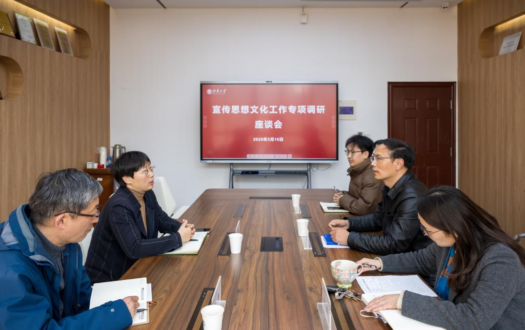 史志洪代表学院对李佳敏一行的到访表示欢迎,并对校党委宣传部长期以来给予学院的支持和帮助表示感谢。围绕本次调研内容,从学院“第一议题”制度落实情况、学院党委中心组学习开展情况、意识形态阵地建设及学院网站管理、年度宣传亮点与方向等方面进行汇报,并着重介绍了2025年拟举办的学科论坛等年度宣传工作亮点。孙颖就学院在党建引领、课程思政、产教融合等立德树人方面的经验做法以及网络思政的亮点和特色进行了汇报,并围绕党建思政品牌凝练、新时代立德树人工程等工作进行展望。