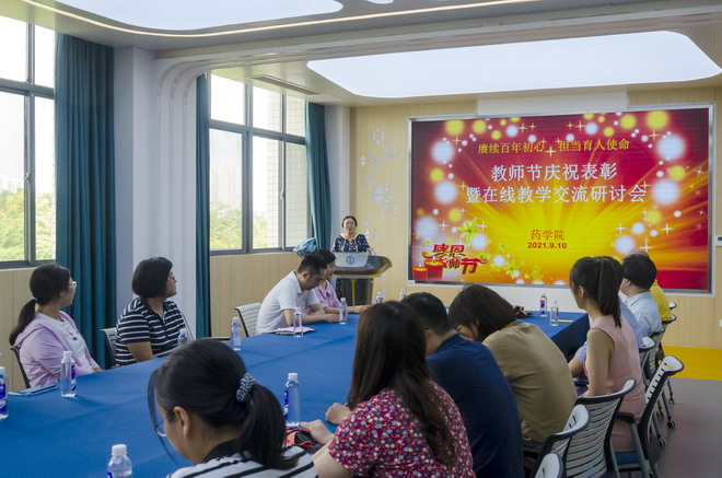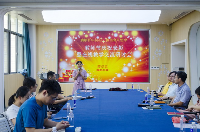 9月10日下午,药学院举行教师节表彰暨在线教学研讨会,药学院教学督导张晓梅教授、陈荆晓副教授、承担在线教学任务的教师代表、新入职的教师参加,会议由教学副院长李会主持。