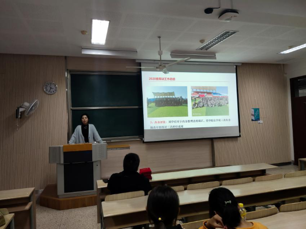 总结表彰大会在庄严的国歌声中拉开了序幕。本次军训带训老师陈晓慧对2020级军训进行了简要总结。她在总结中充分肯定了新生们的军训成果,她指出,同学们经过队列训练掌握了基本的军事知识和技能;在合唱比赛中加强了合作,增进了友谊;在新闻宣传中,同学们积极投稿、制作板报,锻炼提升了自己的写作能力。