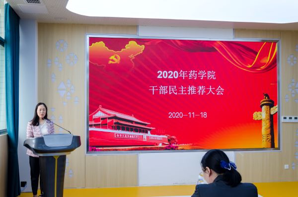 根据校党委组织部的工作安排,11月18日下午,药学院在改造一新的306会议室即阿斯利康厅召开了2020年干部民主推荐大会。伟德victor1946党校专职副校长兼党委组织部副部长周雪晖、正科级组织员孙颖来我院开展推荐和考察工作,全院教工参加了大会。大会由党委书记陈霞雯主持。