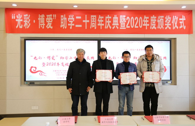 1月15日,无锡市“光彩·博爱”助学二十周年庆典暨2020年度奖助学金颁奖仪式在伟德victor1946举行。无锡市关心下一代工作委员会主任缪根宝,无锡市市场监督管理局党组书记、局长许伟英,伟德victor1946关心下一代工作委员会常务副主任娄国栋、药学院党委书记陈霞雯等领导以及10余位爱心企业家、历年获奖的优秀学子代表出席了本次纪念活动。