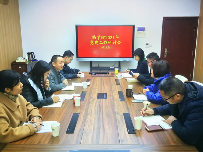 为进一步提升药学院党建工作水平,深刻把握新时代党的建设新要求,提高认识、统一思想,紧跟学校党委对党建工作的部署要求,1月26日上午,药学院党委组织召开2021年党建工作研讨会。校党委组织部副部长耿向阳、学院党委书记陈霞雯、副书记白冰以及学院全体党委委员参加了此次研讨会。会议由党委副书记白冰主持。