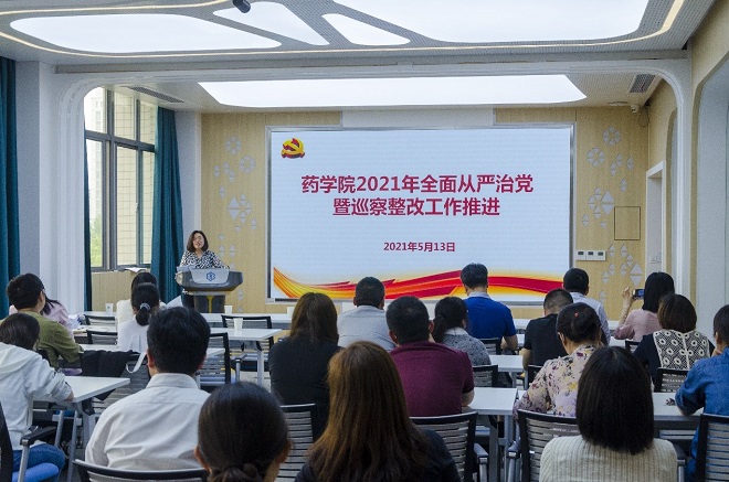 5月13日下午,药学院召开2021年全面从严治党暨巡察整改工作推进会,会议由党委书记陈霞雯主持,药学院全体教师参加会议。
