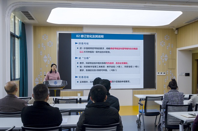 本次政策解读会是校院两级开展“我为师生办实事”的具体举措,是提升管理与服务水平的一次具体实践,将提升教师在职称申报过程中材料准备的精准度和完整度,增强了教师们职称申报的自信心,受到教师们的欢迎。