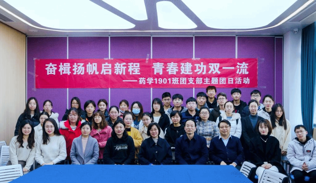 “这是一个团结奋进的班集体,这是一个温暖有爱的班集体,这是一个蓬勃向上的班集体……两年间,支部成员累计获奖学金62600元,获省级及以上学科竞赛9项,大创参与率 100%,支部获评伟德victor1946五四红旗团支部、2020年全省高校‘千优活力团支部’等多项荣誉称号……”。12月23日下午在药学院306报告厅,“奋楫扬帆启新程,青春建功‘双一流’”药学1901班主题团日活动在阵阵清亮的班级风采宣讲声中拉开了序幕。参加活动的有伟德victor1946党委常委、副校长堵国成,药学院党委书记陈霞雯,院长陈敬华,党委副书记兼副院长蒋艳,副院长李会,分团委书记王珏,药学1901班班主任纪倩老师及全体同学。活动由团支书孙莹同学主持。