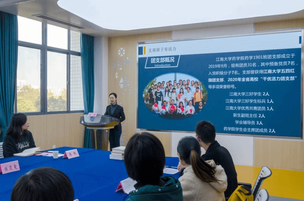 活动伊始,药学1901班团支部书记孙莹从支部班子有活力、制度落实有保证、活动开展有特色、团员管理有实效、工作记录有规范五个方面汇报了团支部建设情况,一组组高质量的数据,一幅幅生动精彩的照片,一个个友爱团结的案例,充分展现出具有药学1901班特色的支部风采。