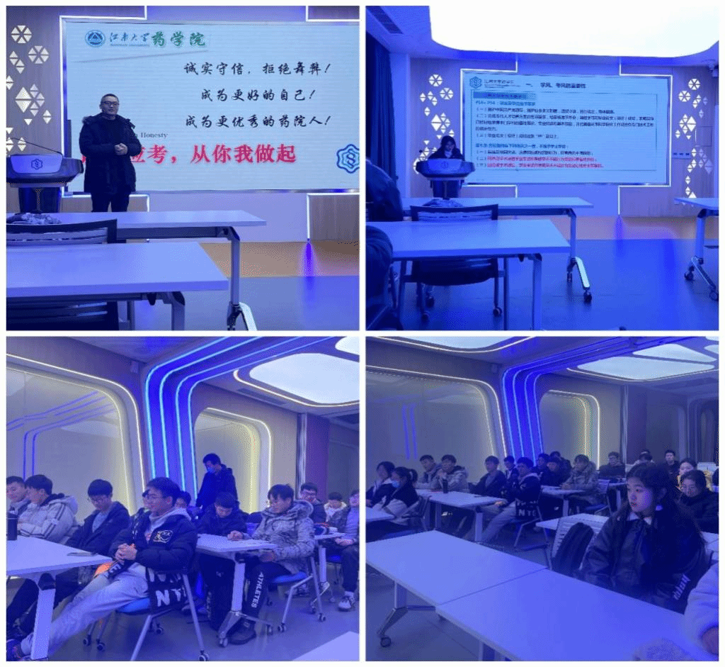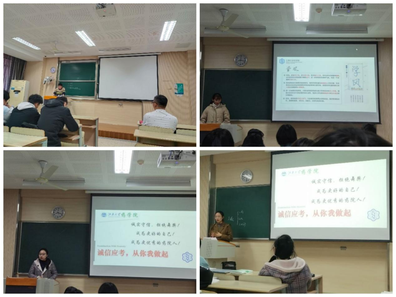 随着期末考试临近,为严肃考风考纪,端正学生考试态度,传承和发扬中华民族“诚信”的优良传统,让同学们不仅在考试中交出满意的答卷,也是在人生中交出一份合格的诚信试卷。药学院召开了学生考风考纪建设大会,共六个班召开,参加会议的有各班班长、团支书与班主任等。