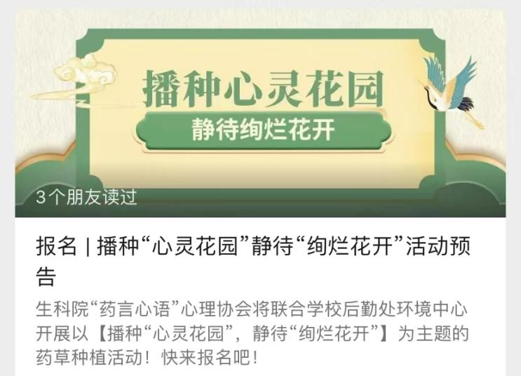 在做好思想引领工作的基础上,学院也设计了一系列特色活动,不断强化教师在学生培养过程中的“头雁”角色。针对后疫情时代学生的心理问题,学院联合学校后勤处环境中心开展以“播种‘心灵花园’,静待‘绚烂花开’”为主题的药草种植活动,由老师和学生共同完成一场药草探索之旅。联合外国语学院举办“以书会友”活动,班主任和导师“共读一本书”,共同分享读书感悟。开展“百年接力,奋斗有我”微视频大赛,加强教工党支部与本科生班团组织间的联动,共同深化学习效果。