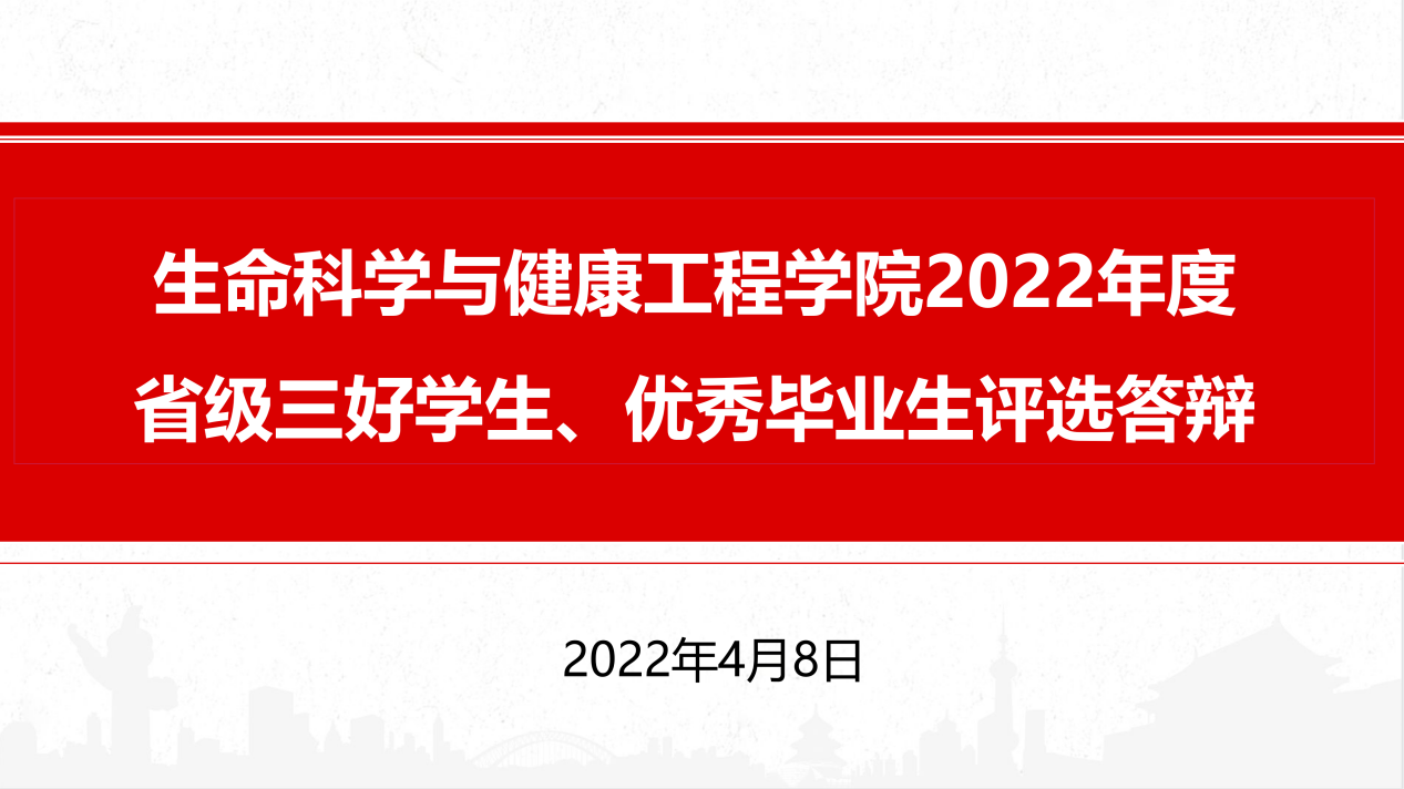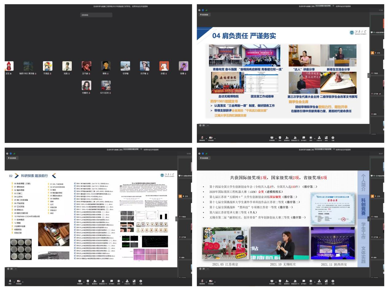 为充分展示生科学子的青春风采和累累硕果,深入挖掘、树立和宣传学生中的先进典型,更好地激励和引导大学生志存高远、脚踏实地,学院于4月8日通过企业微信召开了2022年江苏省省级三好学生、优秀毕业生的学院公开答辩评审活动。院党委副书记副院长蒋艳、分团委书记王珏、分团委副书记任学敏以及学生代表参与了此次会议。