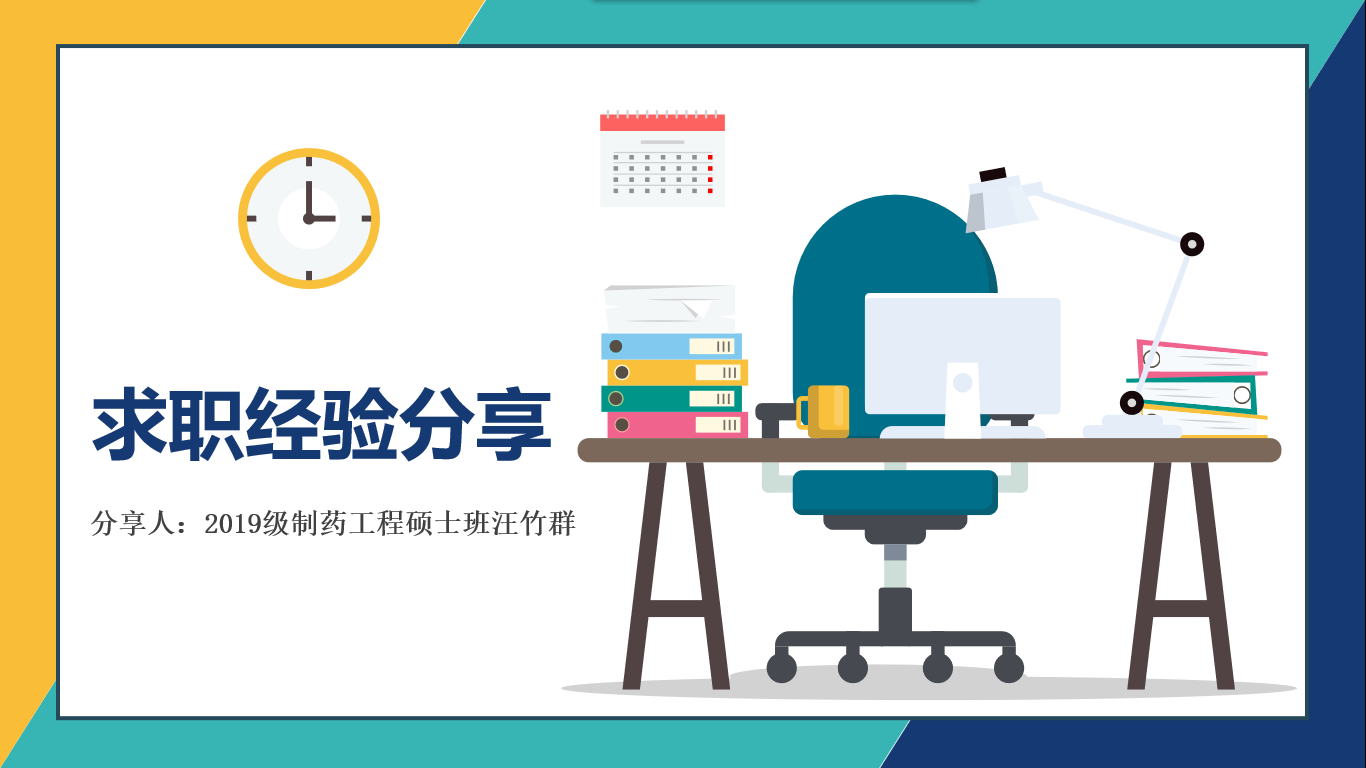 为帮助19级本科生了解求职的过程和技巧,更好地做好未来职业规划,伟德betvlctor1946源于英国“梦想引路人”生涯规划工作室开展“勇往‘职’前,‘职’在必得”主题线上分享活动。本次分享会于5月6日下午,通过企业微信举办。分享会邀请了19级制药工程硕士班的汪竹群以及药学19硕士班的郭良雨作为主讲嘉宾,他们分别结合各自的求职历程为正在准备求职的同学们指点迷津。