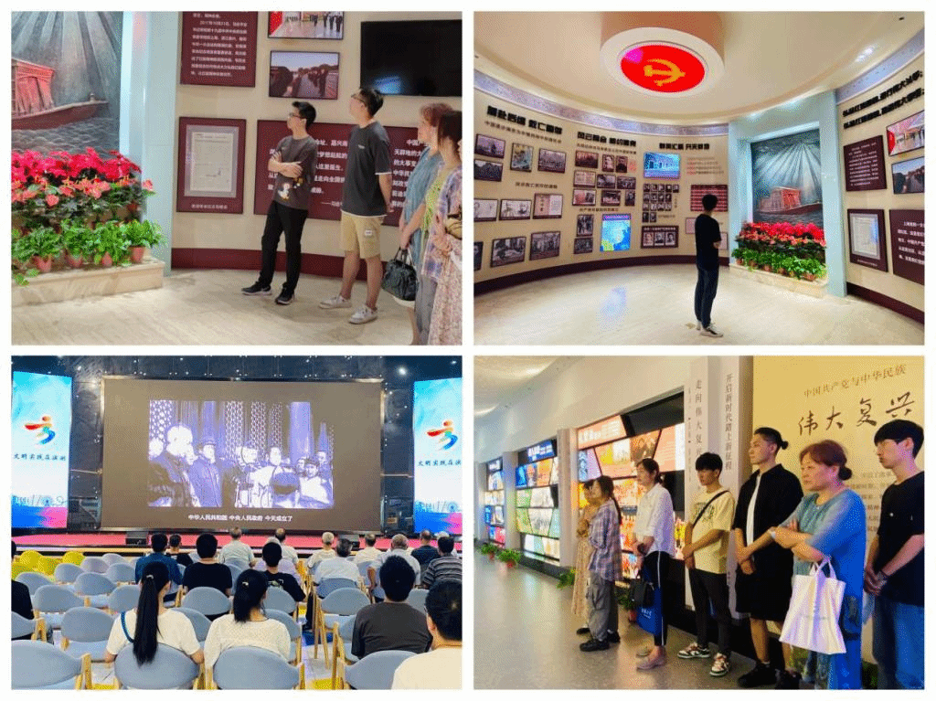 在党建馆里,老同志和师生们在讲解员的带领下,以中国共产党红色精神为主线,通过参观起航、星火、烽烟、黎明、奋斗等8个展厅,深入了解红船精神、井冈山精神、延安精神、西柏坡精神、红旗渠精神、载人航天精神等35个中国共产党在不同时期形成的伟大精神。一组组详实的史料、一幅幅真实的照片展示了中国共产党波澜壮阔的历史,在场的师生党员们被中国共产党带领中华民族团结奋斗、不断进取的历史功绩,和老一辈革命家在革命斗争、改革发展中表现出的牺牲奉献精神所深深感动。最后,全体师生向革命先烈敬献鲜花,通过对革命先烈的缅怀,感悟烈士精神,凝聚初心和信念。