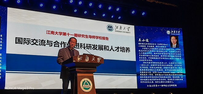 主题报告阶段,南京工业大学化工学院陆小华教授作了题为“三传一反”基础研究如何与时俱进-面向颠覆性技术的思考的报告;东南大学生物科学与医学工程学院党委书记张宇研究员的主题报告是“研究生培养:守正、创新与成才”;浙江工业大学原计算机科学与技术学院党委书记陈庆章教授围绕“研究生自身建设与研究生培养”作了主题报告,三位专家就培养研究生谈了自己多年的心得体会。最后,吴小俊教授先全面介绍了伟德victor1946研究生教育发展的整体情况,再以导师的身份做了“国际交流与合作促进科研发展和人才培养”的主题报告,分析了我校近几年研究生培养与国际交流合作情况,特别强调了团队建设对研究生指导工作的重要性。