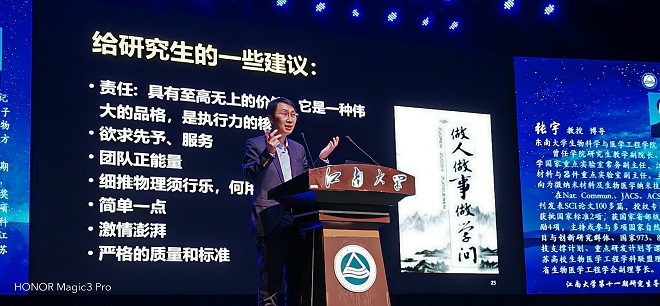 会议开始,陈敬华教授代表承办学院致辞,他谈到导师是研究生培养的关键力量,研究生就读期间不仅接受导师在学术方面的指导,还受到导师为人处世、生活态度等方面的熏陶和影响。他强调要全面落实研究生导师立德树人根本,帮助学生塑造正确的世界观、人生观、价值观,为实现我国科技自立自强提供源源不断的生力军。