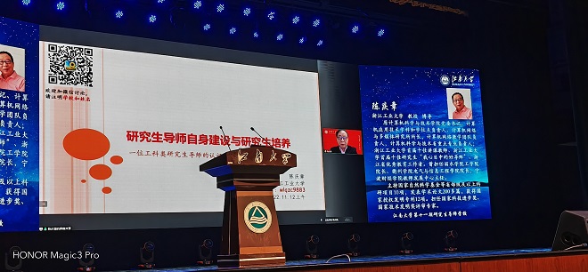 浙江工业大学原计算机科学与技术学院党委书记陈庆章教授作报告