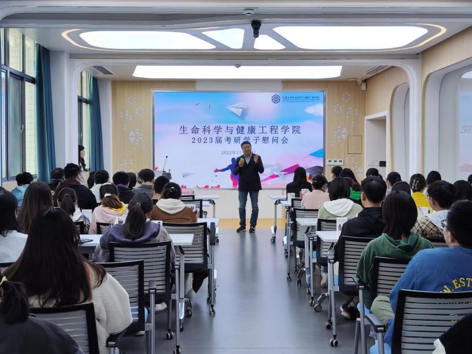 院长陈敬华代表学院向全体考研学生表达了关切之情,充分肯定了同学们为梦坚守、勤学不怠的态度,鼓励大家继续坚持,为自己的梦想努力拼搏,提醒同学们在认真备考之时也要注意身体,合理调整作息。强调要正确对待这次考试,保持一颗平常心,考研是一场大拼搏,结果固然重要,但人生道路更长,拼搏的过程一样精彩,生科学子更应把握这多元化的精彩未来。