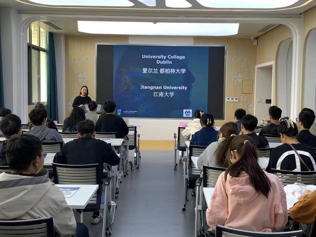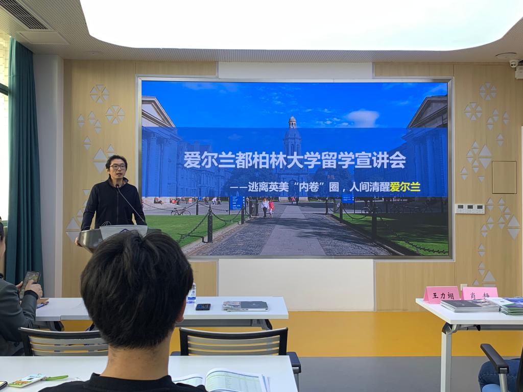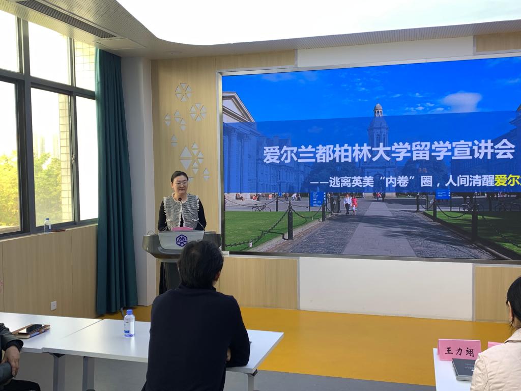 为了共建国际合作项目,丰实名校升学成果,在人才培养过程中更好地发挥国际交流平台的作用,助力学生成长成才,4月26日下午15:30,伟德betvlctor1946源于英国在306会议室举行爱尔兰都柏林大学留学宣讲会。本次活动由学院团委副书记任学敏老师主持,无锡江达留学服务中心经理王力翊、资深留学顾问肖静老师、尹建院长、前研究生秘书吴新老师特邀出席,2020级、2021级的60名本科生参加了宣讲会。
