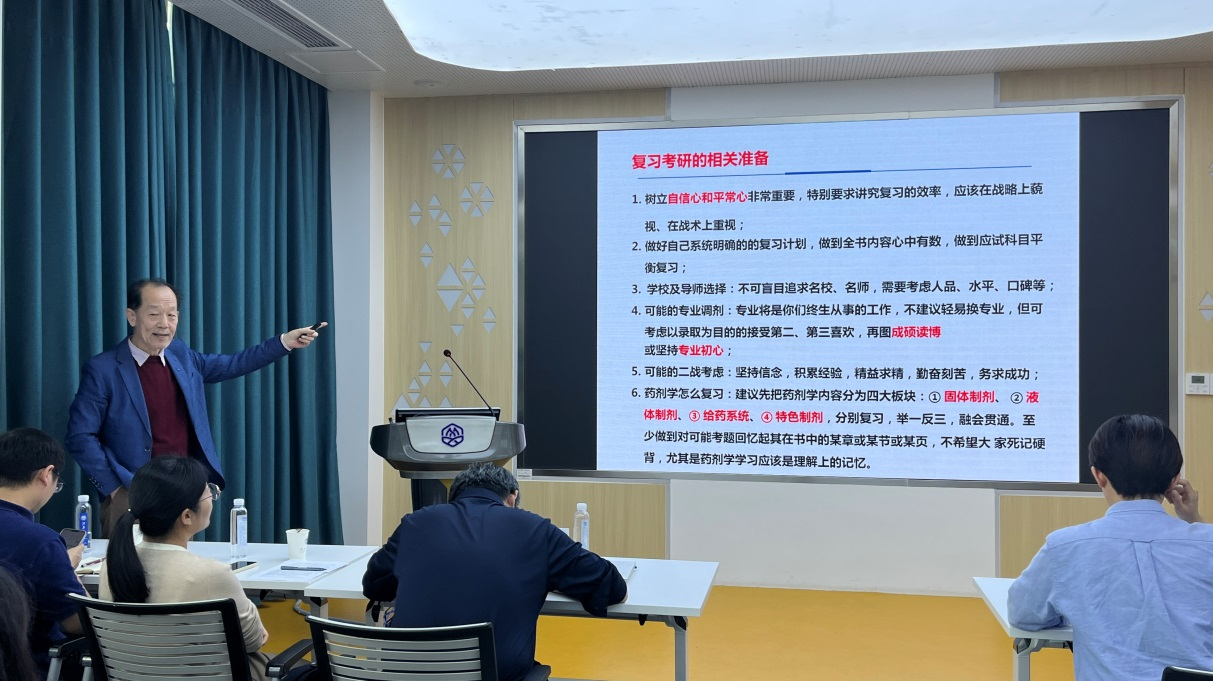 接着,陈大为教授以“浅谈药剂专业发展与大学生自我规划”为主题,从体外研究、体内研究、产业转化、学科发展四方面进行讲解。陈教授进行了药剂学专业的归纳和药物剂型转化升级的分类;给出了适合学生们学习的建议,以及复习考研方法,可谓泾渭分明,有条有理。此外,陈教授结合专业特点和药学行业发展趋势,给出了关于工作的建议,应以兴趣和发展为主,多思考多尝试,可谓干货满满。