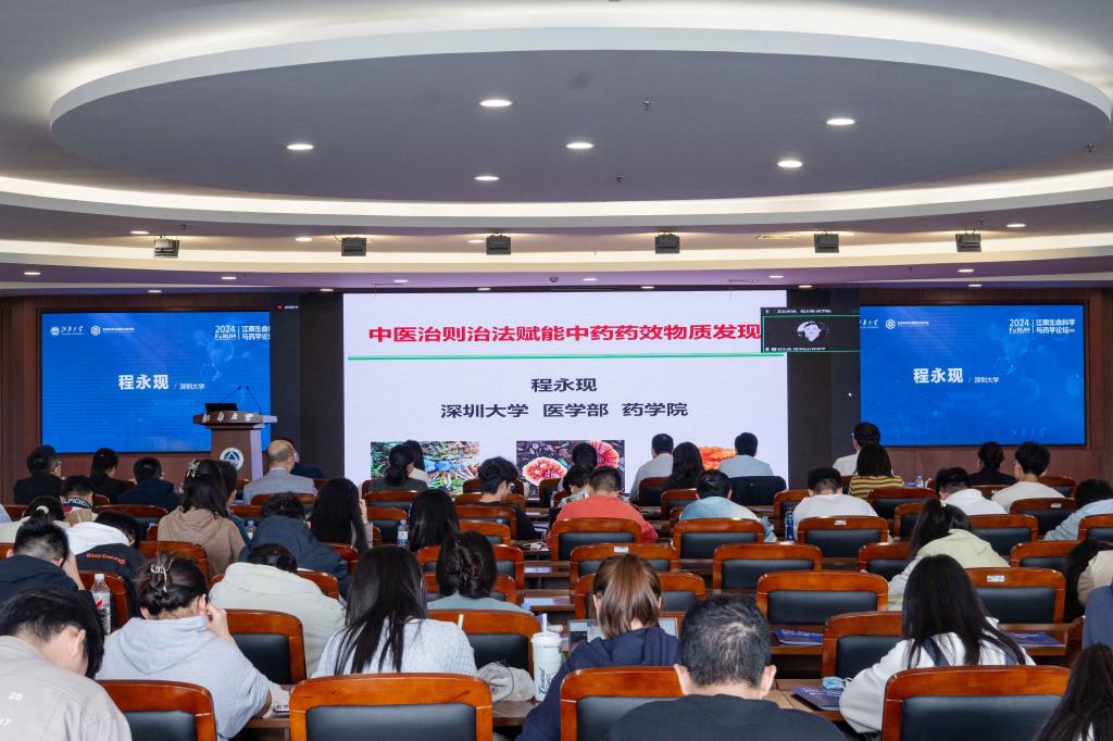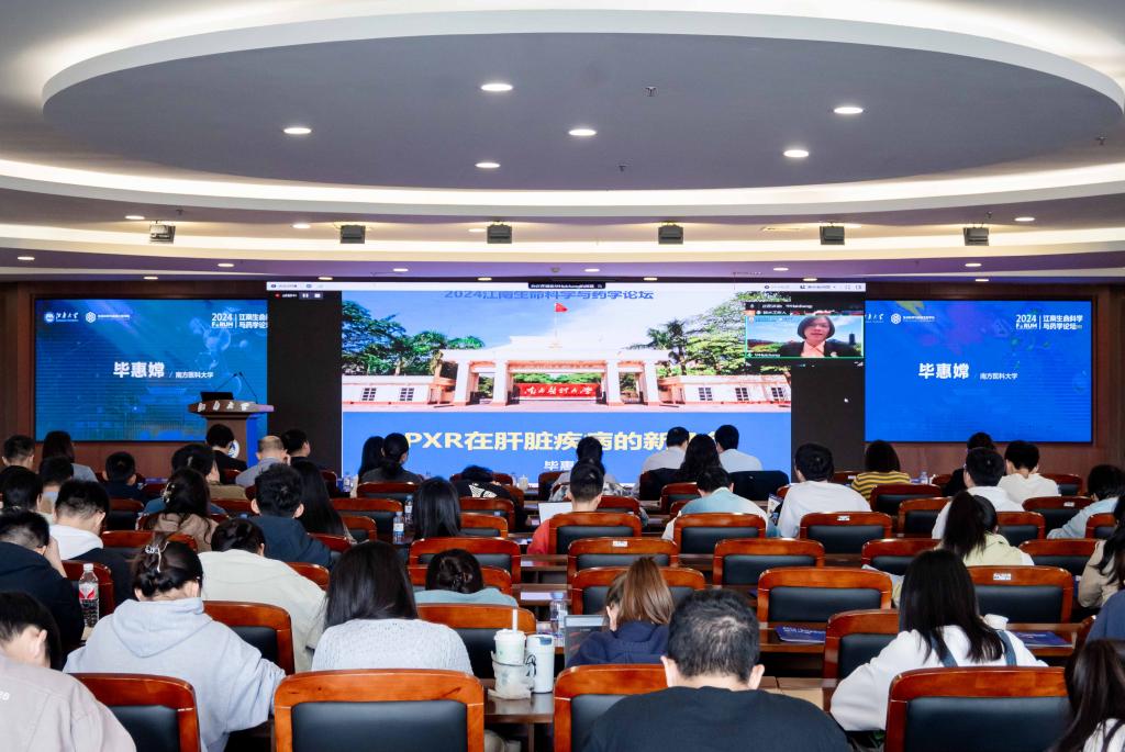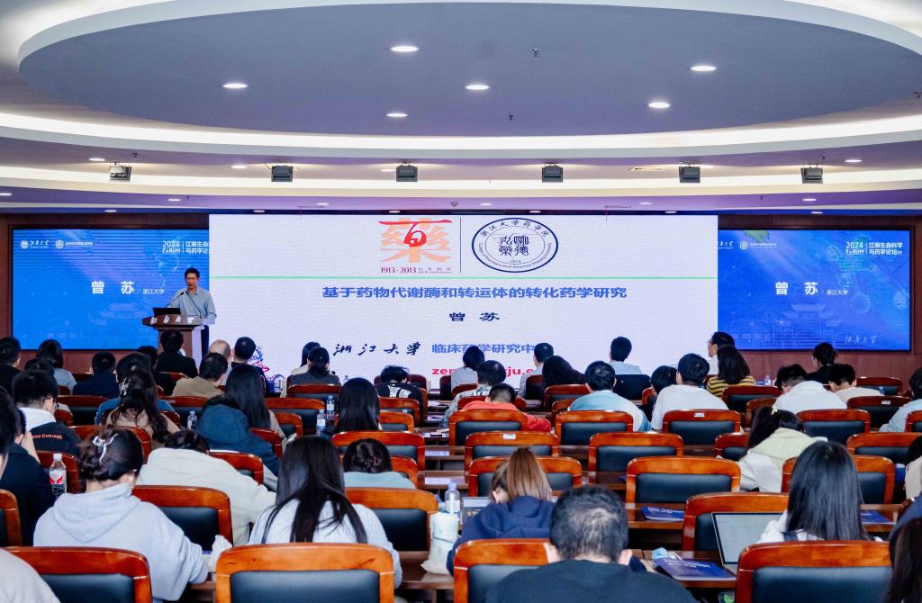 论坛特邀浙江大学临床药学研究中心主任、国务院学位办药学学科评议组成员曾苏教授、上海交通大学药学院院长张翱教授、深圳大学药学院院长程永现教授、南方医科大学药学院院长毕惠嫦教授、中国药科大学药学院副院长(主持工作)吴照球教授、暨南大学药学院院长张冬梅研究员、沈阳药科大学制药工程学院院长刘洋教授等7位专家做学术交流。内容涉及基于药酶和转运体调节机制的临床药学转化研究、消化道肿瘤靶向药物研究、中医治则治法赋能中药药效物质发现、核受体PXR在肝脏疾病的新⻆色、锌指转录因子生物学新功能研究与靶向药物发现、周细胞-抗肿瘤新靶标、创新药物研究及绿色制药工艺的实践等领域。会场气氛热烈,报告精彩纷呈,站位高、观点新,开阔了大家的视野,为江大生科院的师生们呈现了一场学术的饕餮盛宴。