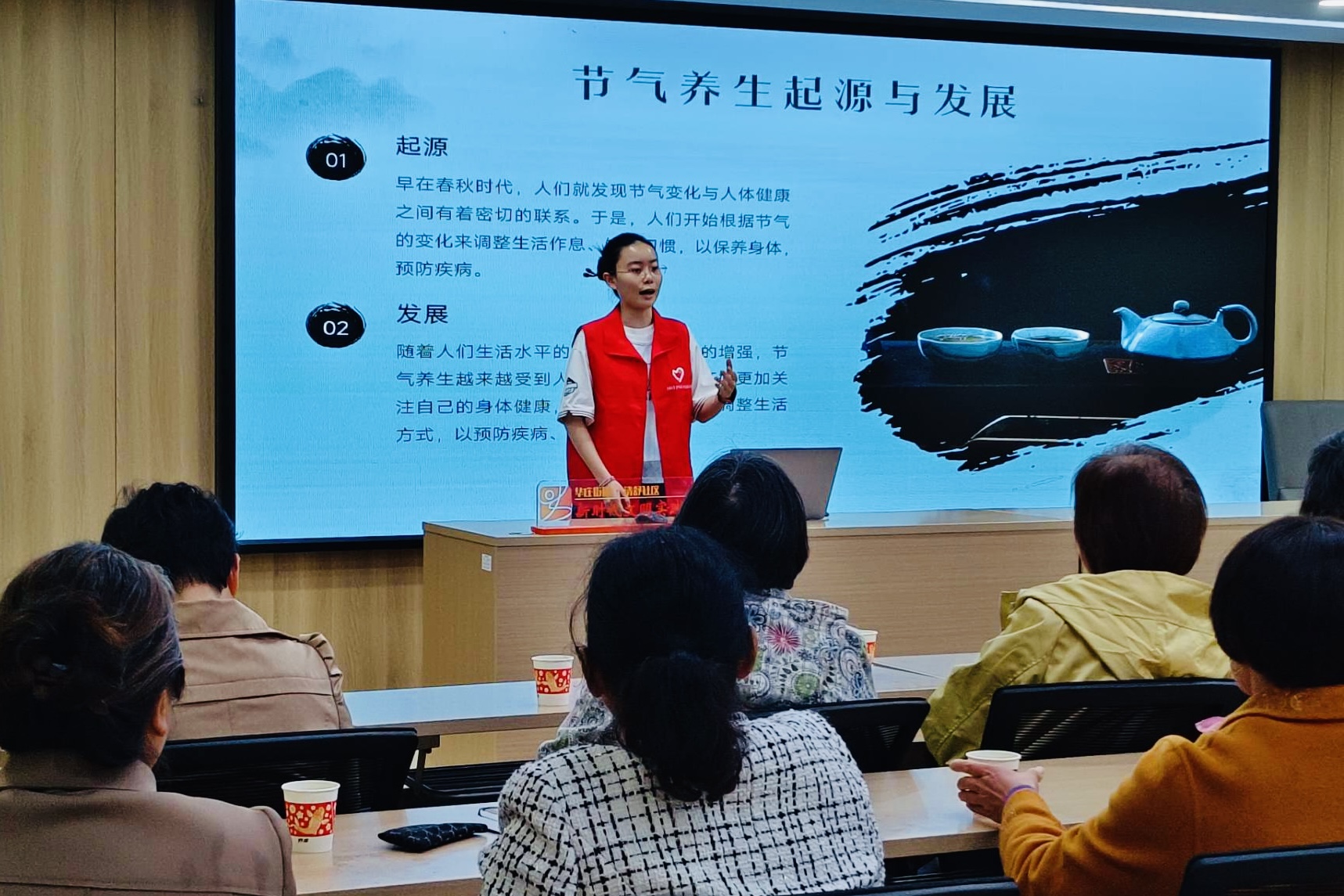 活动开始,刘语凝同学首先介绍了节气养生的历史渊源,指出早在春秋时代,人们便发现节气变化与人体健康息息相关,并根据这一规律调整生活作息和饮食习惯以保养身体。随着时代的进步,节气养生受到了越来越多人的重视,成为提高生活质量的重要途径。