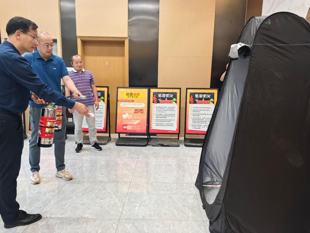签订仪式后,全体教职工在学院一楼大厅进行了消防实战模拟演练。保卫科科长王世强现场演示灭火器的使用方法,与会老师逐一进行实操体验。