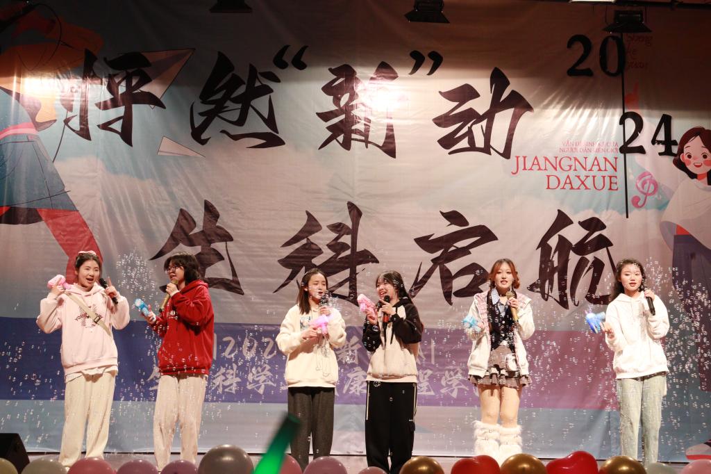 第三篇章“生命之光 青春激昂”。神秘的舞蹈世界里,每一个舞步都一段无声的诉说,每一次舞动都仿佛开启一扇通往奇幻之境的大门。李知恩为同学们带来的舞蹈《Mantra》,更是融合了独特的文化韵味与激情四溢的肢体表达。郑宇桐、张润泽、莫文和郭子阳的歌声,让同学们漫步在歌曲《知足》的宁静小路上,让正在追逐远方的目标的同学们,回想起身边那触手可及的幸福。赵婧媛,刘蔚然为同学们带来的舞蹈《hype boy》、《寄明月》,让同学们沉浸于青春的旋律与古典的雅境的交织中。韩潇、孟凌帆、叶志佳、吴语、卫蓝、李冰爽和徐明铭为同学们带来的诙谐小品《就看五分钟》提醒着同学们要珍惜时间,切莫在网络世界中迷失自我。