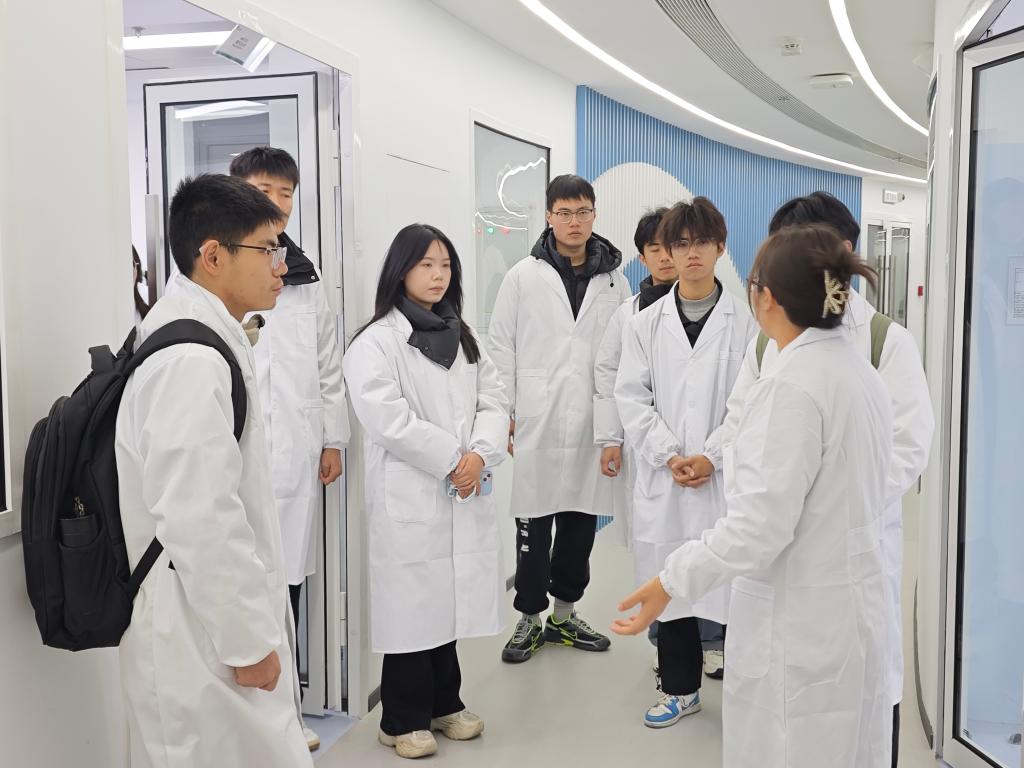 最后,师生一行实地参观了长风药业研发实验室。通过走访交流,同学们岗位需求和行业发展趋势有了更直观的认知,深刻认识到医药产业前景广阔、医药行业大有可为,进一步激发了投身行业的热情与使命感,立志为答好“健康中国答卷”贡献江大生科力量。