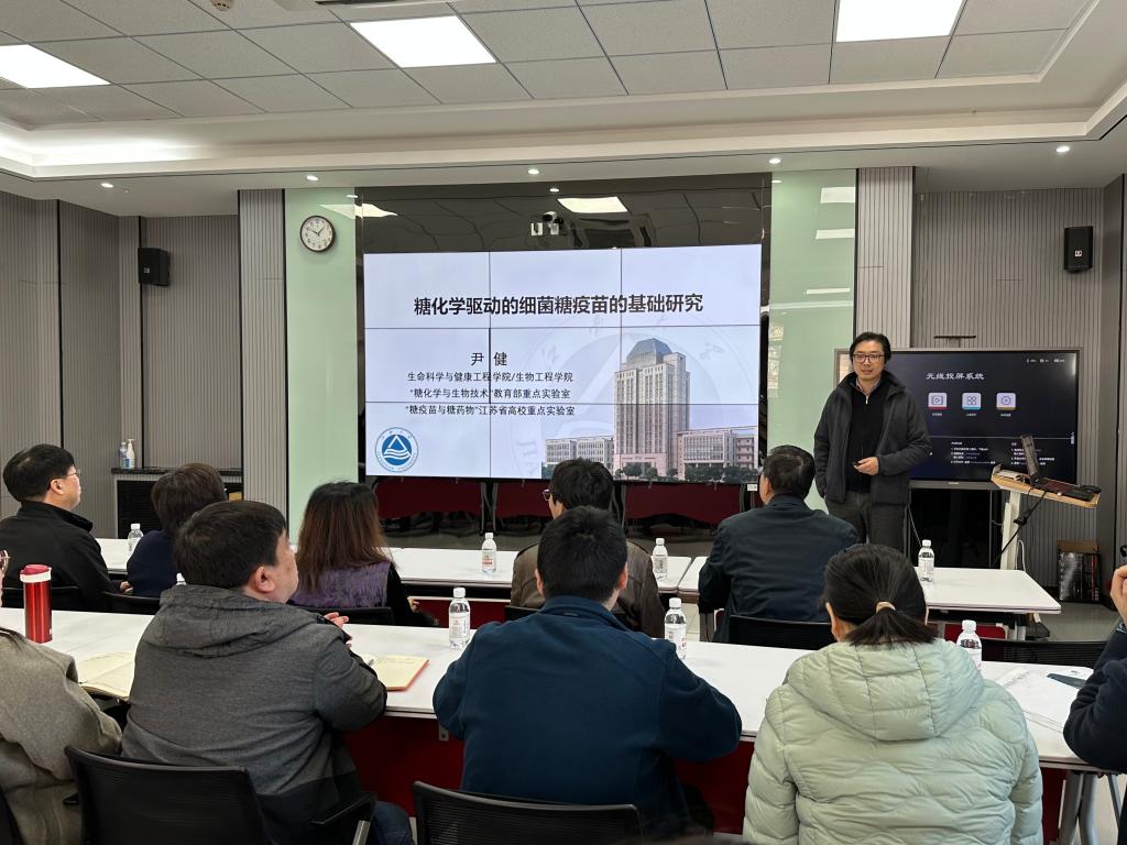 访问期间,尹健院长以“糖化学驱动的细菌糖疫苗的基础研究”为题作学术报告,系统介绍了其团队在糖疫苗工程领域的最新研究成果,特别是细菌糖疫苗的设计策略与应用前景。报告引发热烈讨论,双方学者围绕糖疫苗及糖药物领域的技术难点、转化路径及未来发展方向展开了深入交流,进一步激发了学术合作的潜力。