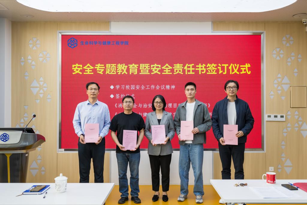 副院长杨子毅做安全专题教育,组织学习校园安全工作会议精神,并举行《消防安全与治安综合治理目标管理责任书》与《伟德betvlctor1946源于英国实验室安全责任书》签订仪式。