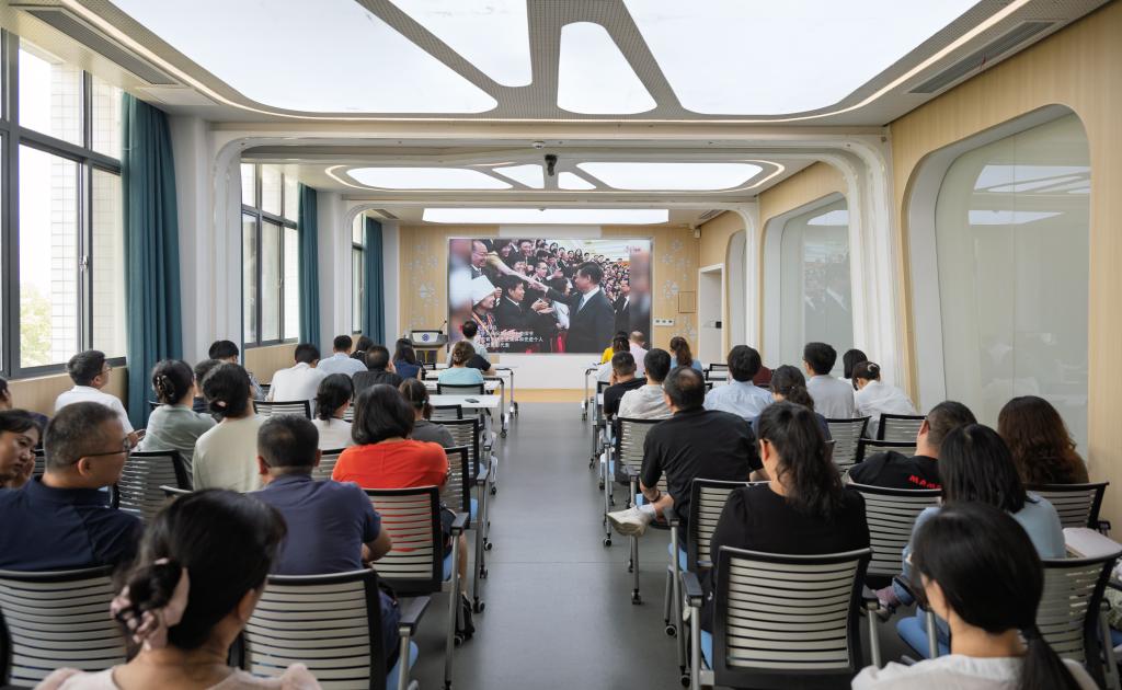 史志洪带领全体教职工开展政治理论学习,共同观看学习了《习近平的教师情》。该片生动记录了习近平总书记对教育事业高度重视和对教师队伍的深切关怀。全体教职工应深入学习领会习近平总书记重要讲话精神,落实立德树人根本任务,践行教育家精神,做新时代高素质专业化“大先生”,为培养德智体美劳全面发展的社会主义建设者和接班人贡献力量。