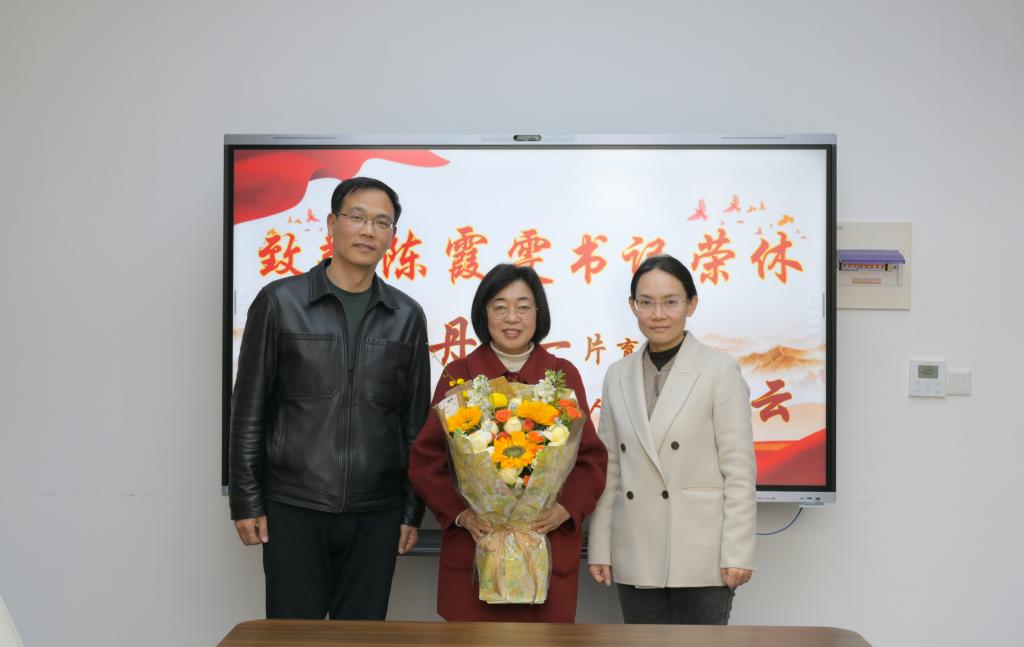 仪式上,史志洪、孙嘉代表全院师生为陈霞雯书记献花,全体与会人员合影留念。座谈交流中,大家共同回顾与陈霞雯书记共事的点滴岁月,对其多年来深耕学院党建与思政工作、引领学院高质量发展的突出贡献予以高度评价,对她严谨务实的工作作风、无私奉献的敬业精神表达由衷敬佩,现场满含不舍与真挚祝福。陈霞雯书记深情回望在学院的耕耘历程,对同仁们的一路支持配合表示衷心感谢,并郑重许下“离岗不离心”的承诺,坦言未来将始终心系学院发展,一如既往地关心、支持学院各项事业建设。孙嘉寄语全体党政人员,要以陈霞雯书记为榜样,传承那份敬业执着、育人育才的初心,以实实在在的作为为学院发展注入新动能。史志洪强调,荣休教师是学院的宝贵财富,并衷心祝愿陈霞雯书记乐享退休生活,有空常回 “家” 看看,继续为学院发展建言献策。