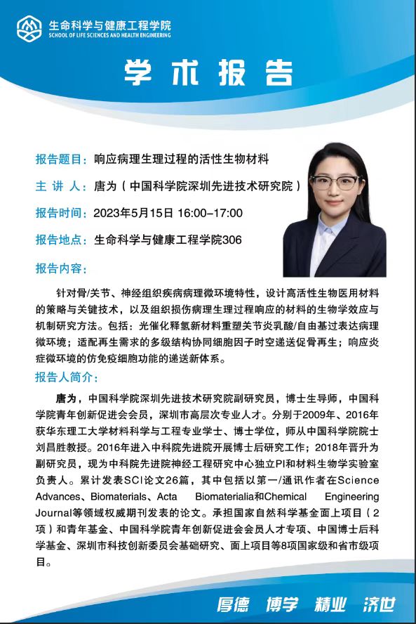 报告人 唐为 时间 2023年5月15日16:00-17:00