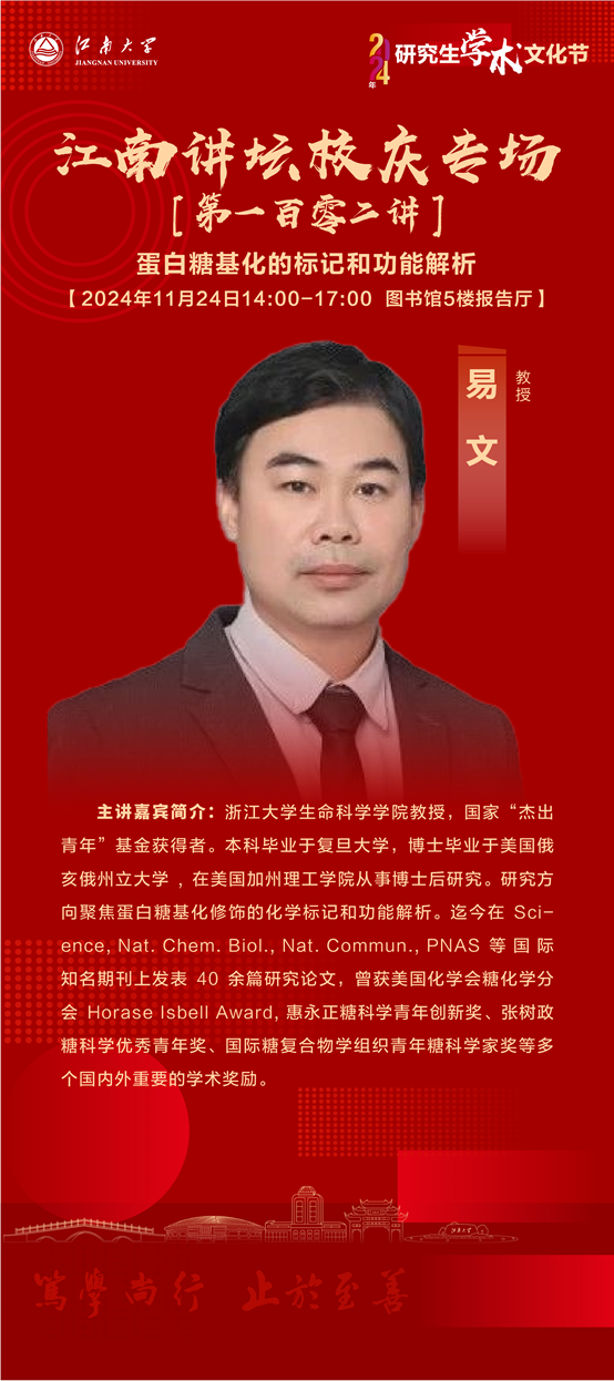 易文,浙江大学生命科学学院教授,国家“杰出青年”基金获得者。本科毕业于复旦大学,博士毕业于美国俄亥俄州立大学,在美国加州理工学院从事博士后研究。研究方向聚焦蛋白糖基化修饰的化学标记和功能解析。迄今在Science, Nat. Chem. Biol., Nat. Commun., PNAS等国际知名期刊上发表40余篇研究论文,曾获美国化学会糖化学分会Horase Isbell Award,惠永正糖科学青年创新奖、张树政糖科学优秀青年奖、国际糖复合物学组织青年糖科学家奖等多个国内外重要的学术奖励。