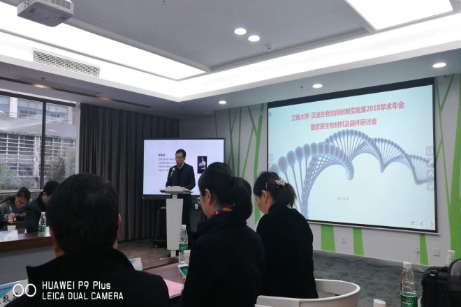 学术报告环节由东南大学顾宁教授主持。蒋青教授、蒋波教授、黄进教授、卢建熙总经理分别就胶原蛋白基医用材料、骨填充生物材料、软骨治疗等方向进行了精彩的研究报告。参会人员认真听取、积极提问、热烈讨论相关的科研问题。